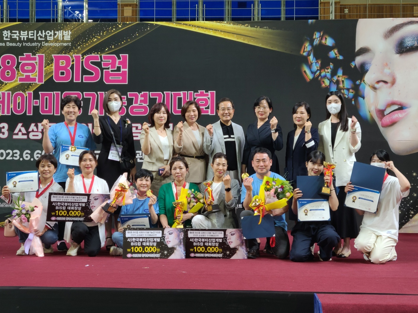 ○ 광주빛고을체육관에서 열린 제 8회 BIS(Beauty Insustry Society)컵 국제 이*미용기능경기대회에서 헤어, 피부, 네일 각각의 분야에서 대회장상, 대상, 금상, 은상, 동상 등 20명 전원이 우수한 성적으로 대회장상은 김지윤(1학년, 두피관리). 신소현(1학년, 두피관리), 추명례(1학년, 등관리) 3명이 차지 했다.