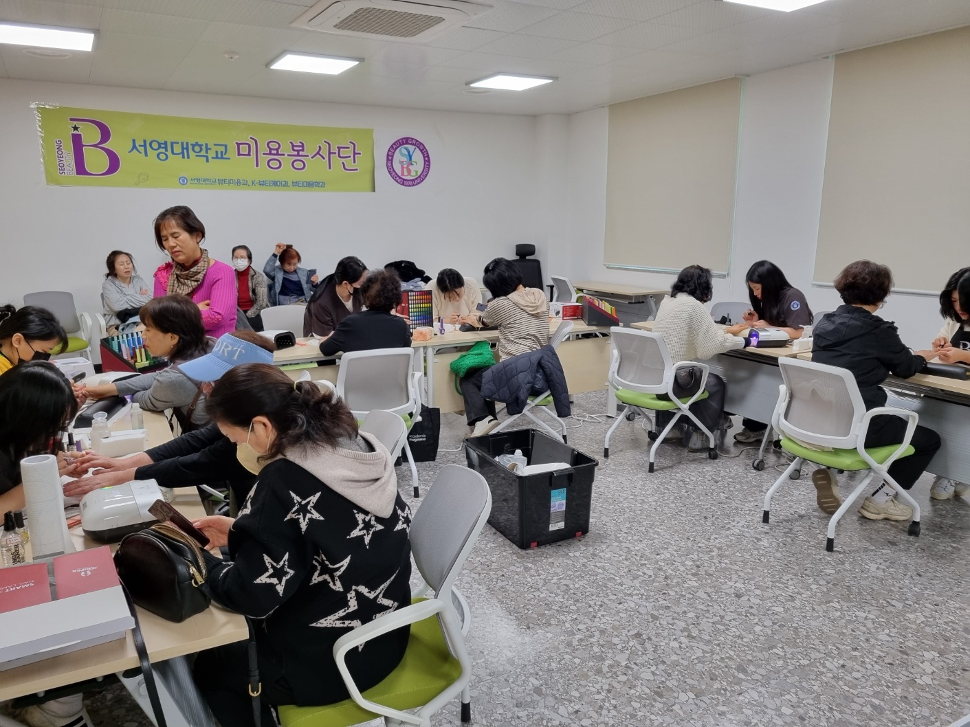 서영대학교 뷰티미용과는 북구청에서 운영하는 대학연계 주민참여 프로그램 지원사업에 참여하여 지역주민을 대상으로 두피관리와 네일케어로 미용봉사가 진행이 되었다.