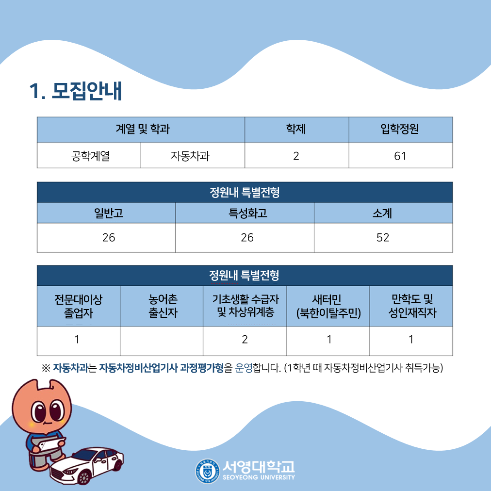 2021학년도 서영대학교 자동차과 입학안내 입니다.