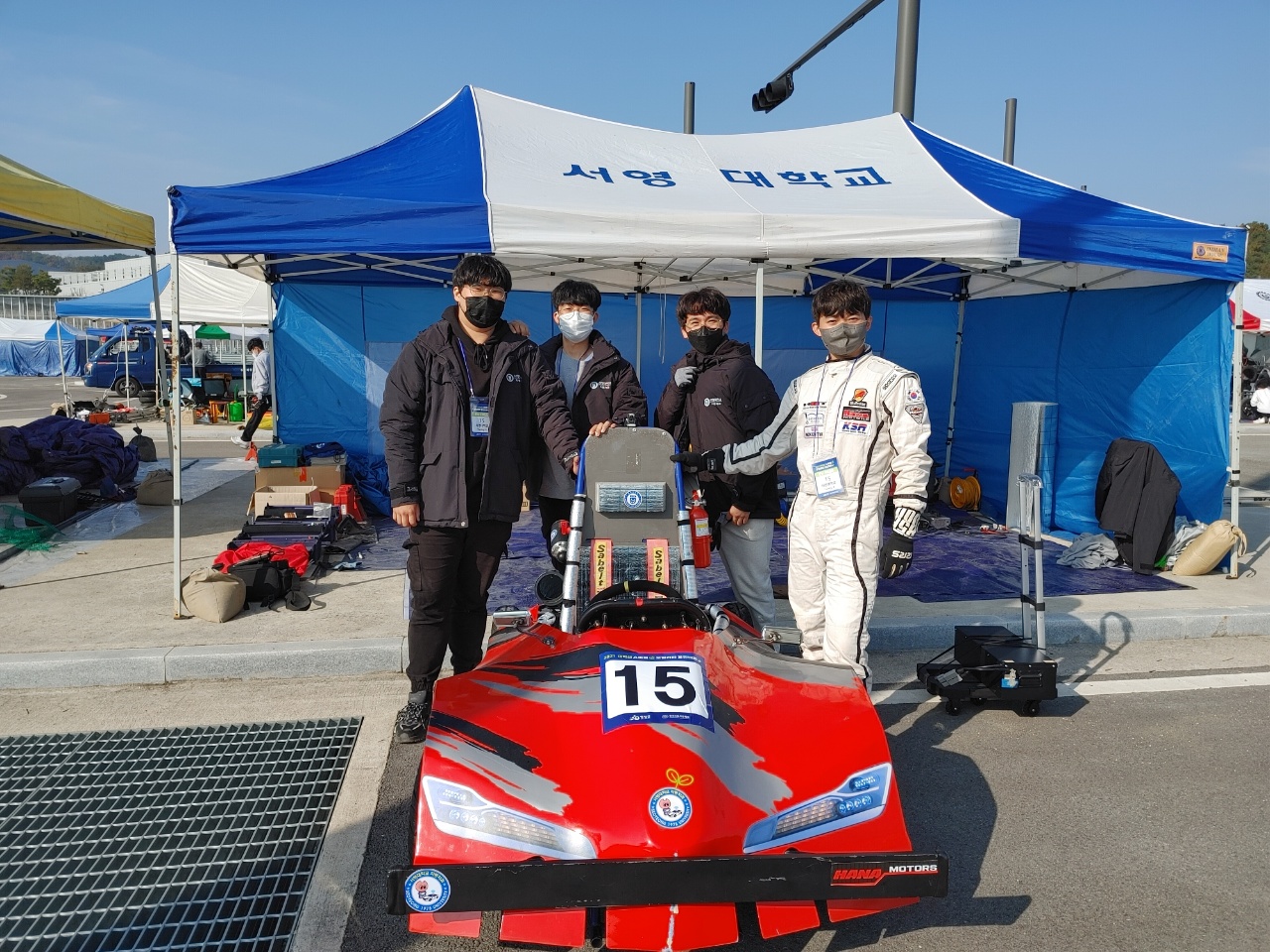 2021년 서영대 튜닝-X팀 대학생 스마트 e-모빌리티 경진대회 참가. 대회 일시 : 2021년 11월 5일 ~ 7일 (3일) 주최 및 후원 : 한국자동차공학회, 영광군 대회 장소 : 영광군 e-모빌리티 연구센터 시험장 이번대회는 전국의 2년, 4년제 대학에서 50개 팀이 (서영대 튜닝-X) 출전하였으며, 경기 종목으로 제동검사, 직진주행, 슬라럼, 내구레이싱 1차, 내구레이싱 2차 순으로 진행하여, 최종결승전에서 서영대 튜닝-X팀이 1위로 통과하는 우수한 성능을 뽐낸 자리였습니다.