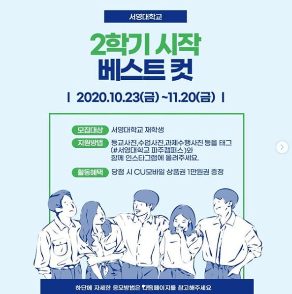 10월~11월에는 파주캠퍼스 서영인들을 위한 입학홍보처 이벤트가 진행되고 있어요. 당첨자에게는 _CU모바일 상품권이 1만원권이 기다리고 있어요. 이벤트에 참여하시어 꼭 모바일 상품권 받아가세요~^^*