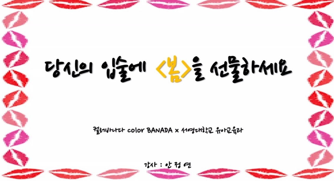 - 내용 : 사람마다 가지고 있는 이미지를 어떻게 하느냐에 따라서 자신의 인상이 바뀌어질 수 있으며, 자신에게 맞는 컬러들을 조합하여 이미지의 변화를 새롭게 줄 수 있다는 것을 알게되었습니다. 직접 다양한 화장품들을 발색해보여주시면서 자신의 피부톤이나 이미지에 맞는 색들을 찾아낼 수 있는 방법들을 알려주시며 특강을 마무리하였습니다.