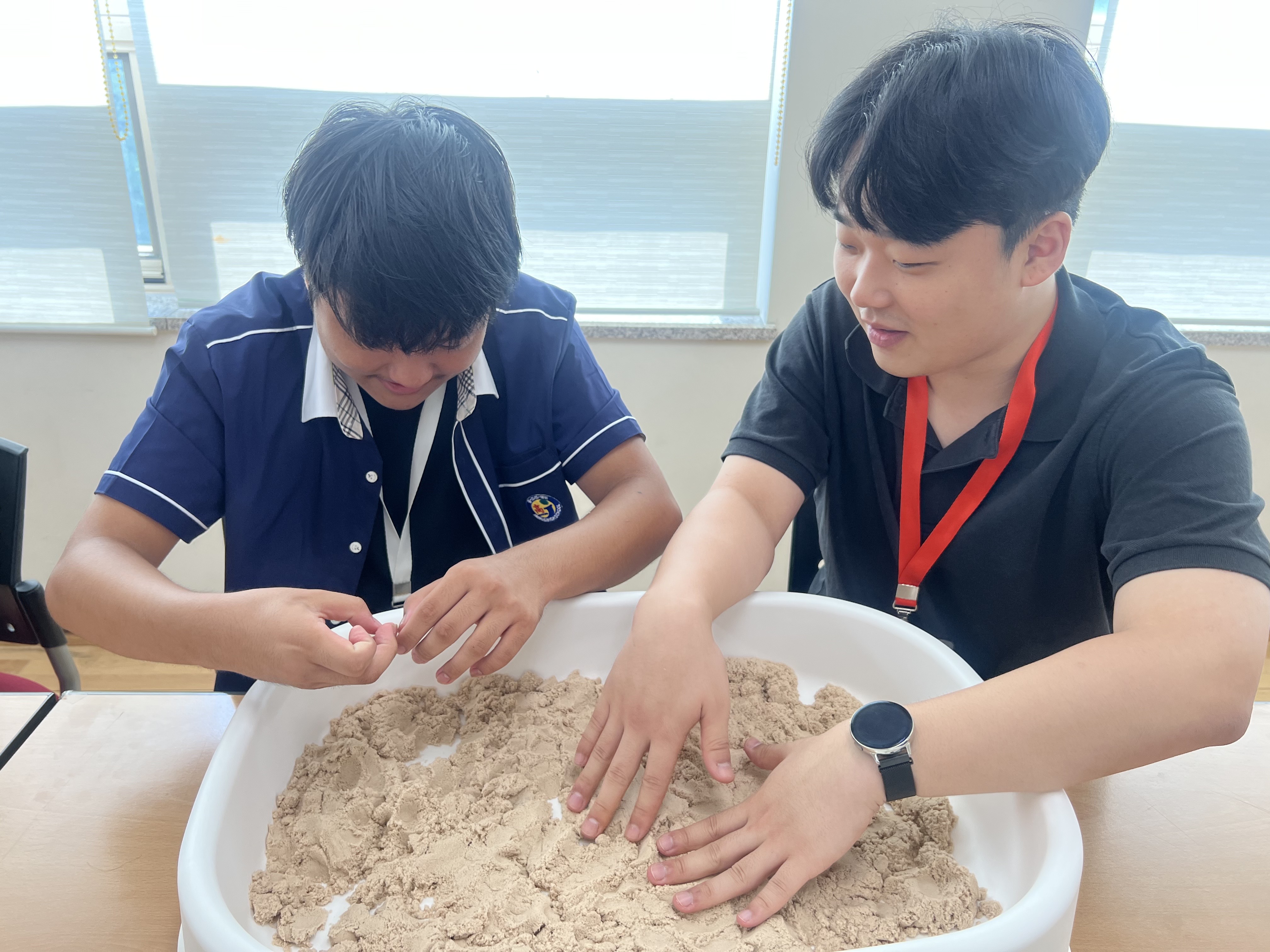 - 내용 : 서영대학교에서는 9/4 ~ 9/8일 5일간 '2023 고교 장애학생 대학생활 체험프로그램'을 운영하였습니다. 유아교육과도 프로그램에 참여하여 '모래놀이를 통한 나만의 세상만들기', '3D 매체를 활용하여 입체작품 만들기' 등 고교 장애학생들과 함께 다양한 활동을 진행하였습니다.