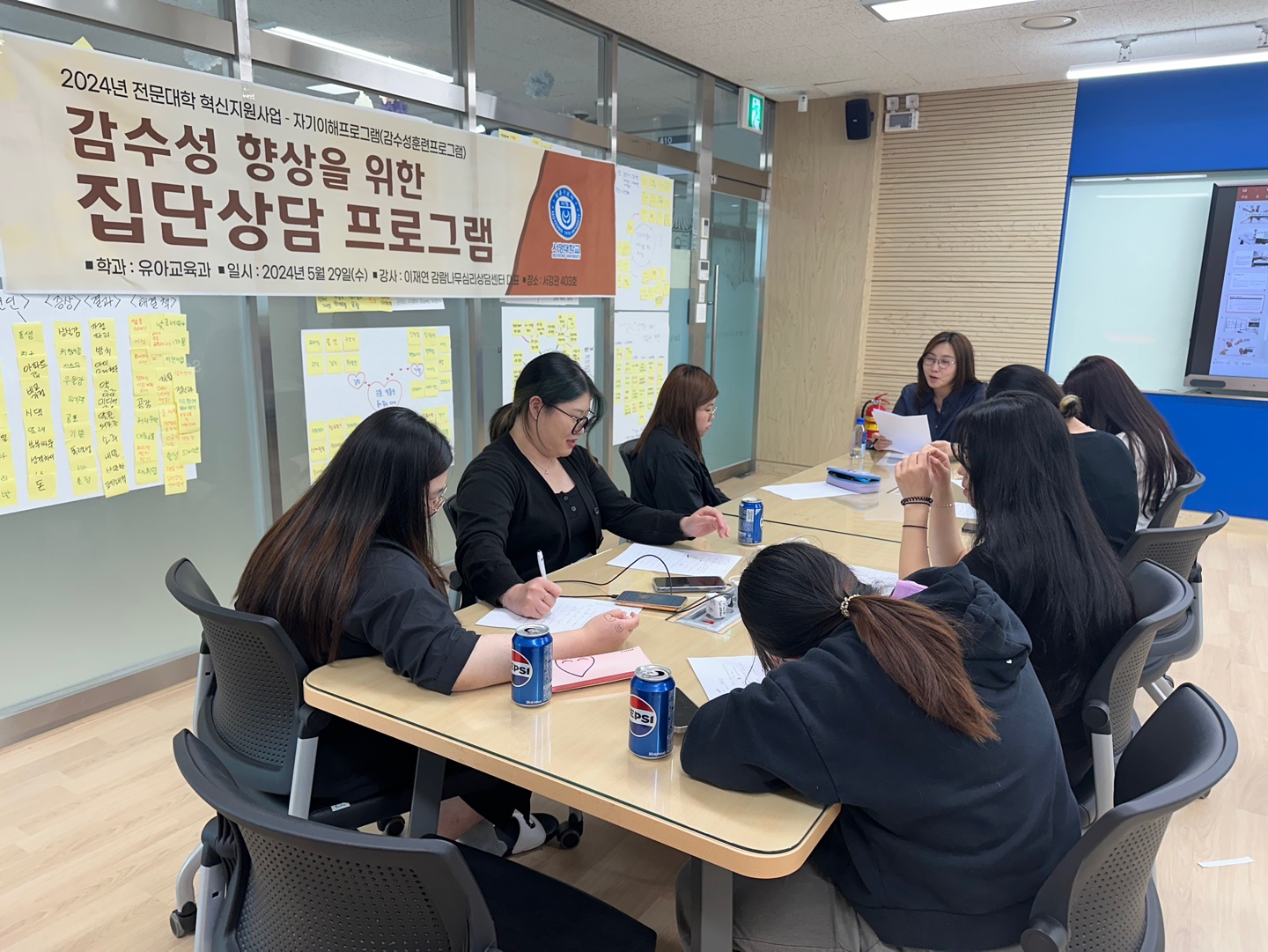 - 내용 : 강의 중 집단 상담 시 고려할 사항과 인간관계와 감수성에 대해 기억이 남았고 나 자신을 표현하는 법과 나를 알기 위해 무엇을 해야 하는지에 대하여 강의가 이루어졌습니다. 정해진 도형을 골라 심리 검사를 진행했는데 전반적으로 잘 맞아서 너무 즐겁게 강의를 들을 수 있었습니다. 나에 대해 잘 알고 유연하게 표현해보는 시간이 되었습니다.