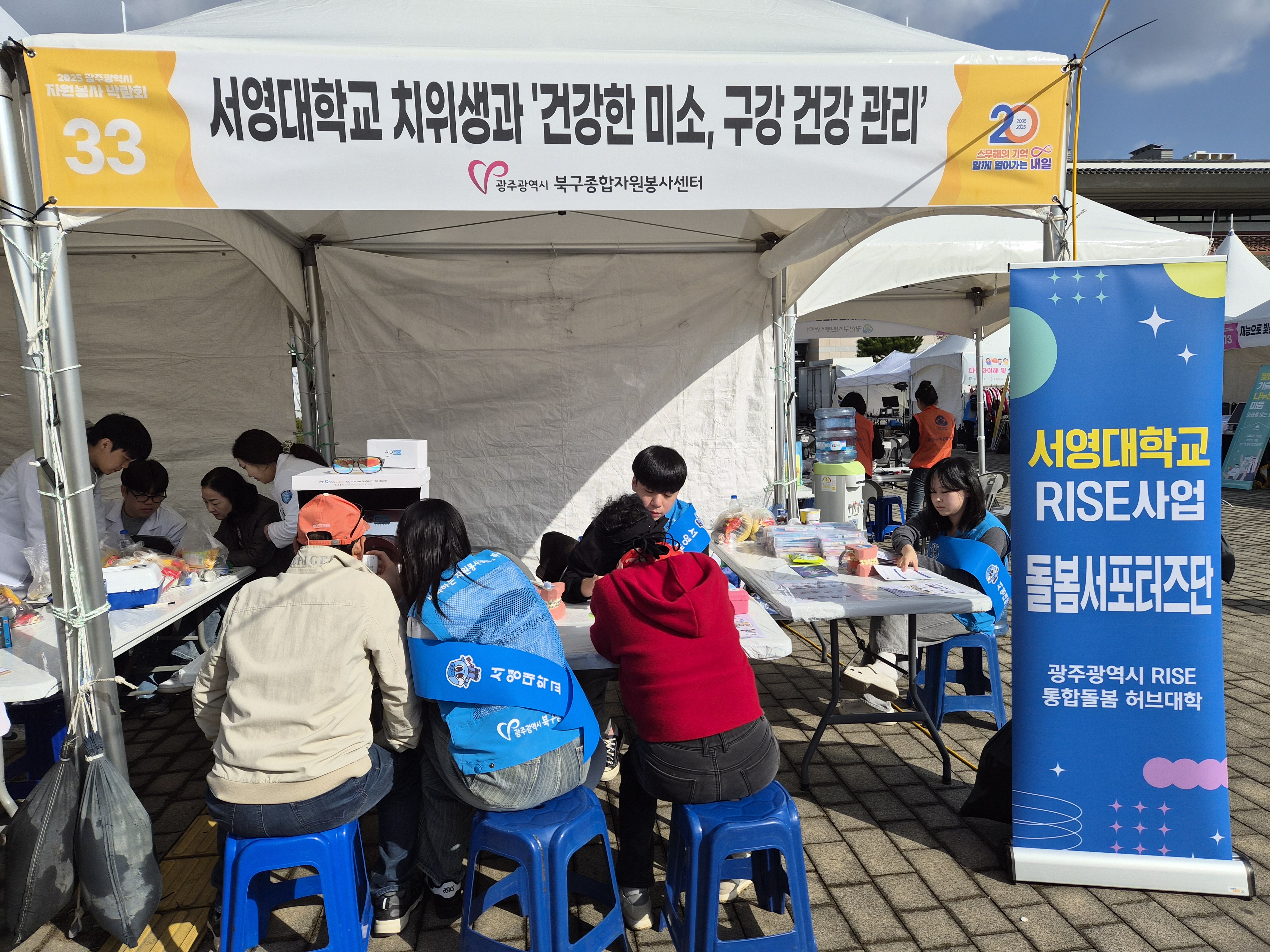 2025 광주광역시 자원봉사 박람회 서영대학교 치위생과가 다녀왔습니다! 우리 치위생과 학생들이 지역주민분들을 대상으로 구강보건교육을 진행했어요 올바른 칫솔질 방법부터 구강 건강 관리 꿀팁까지! 주민분들과 함께 웃으며 배우는 뜻깊은 시간이었습니다 앞으로도 지역사회와 함께 건강한 미소를 지켜나가는 서영대 치위생과가 되겠습니다
