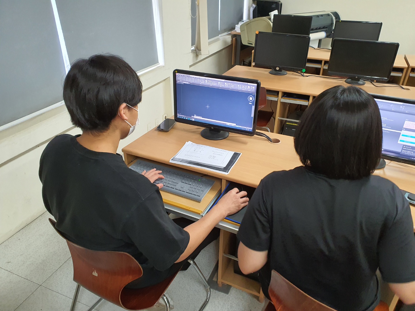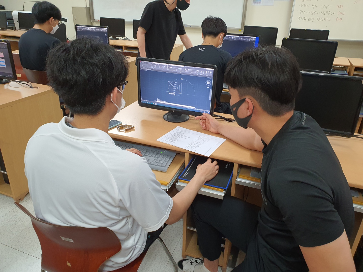 방학기간에 운암관3층 CAD 실에서 선배들과 CAD 배우기를 하고있습니다.