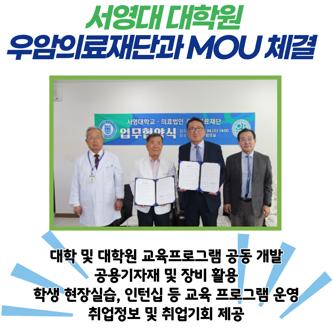 ○박정수 서영대 대학원장은“양 기관의 역량과 자원을 기반으로 지역사회 발전 및 우수인재 양성을 위한 좋은 발판을 마련했다”며“대학원생들이 더 나은 고숙련 기술을 습득할 수 있는 좋은 교육과정을 운영할 수 있게 돼 기쁘다”고 전했다.