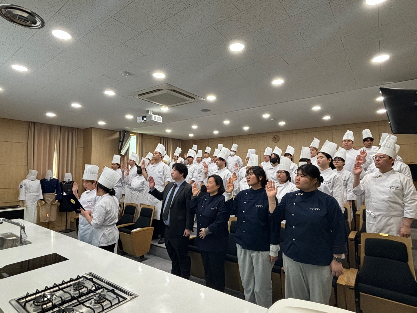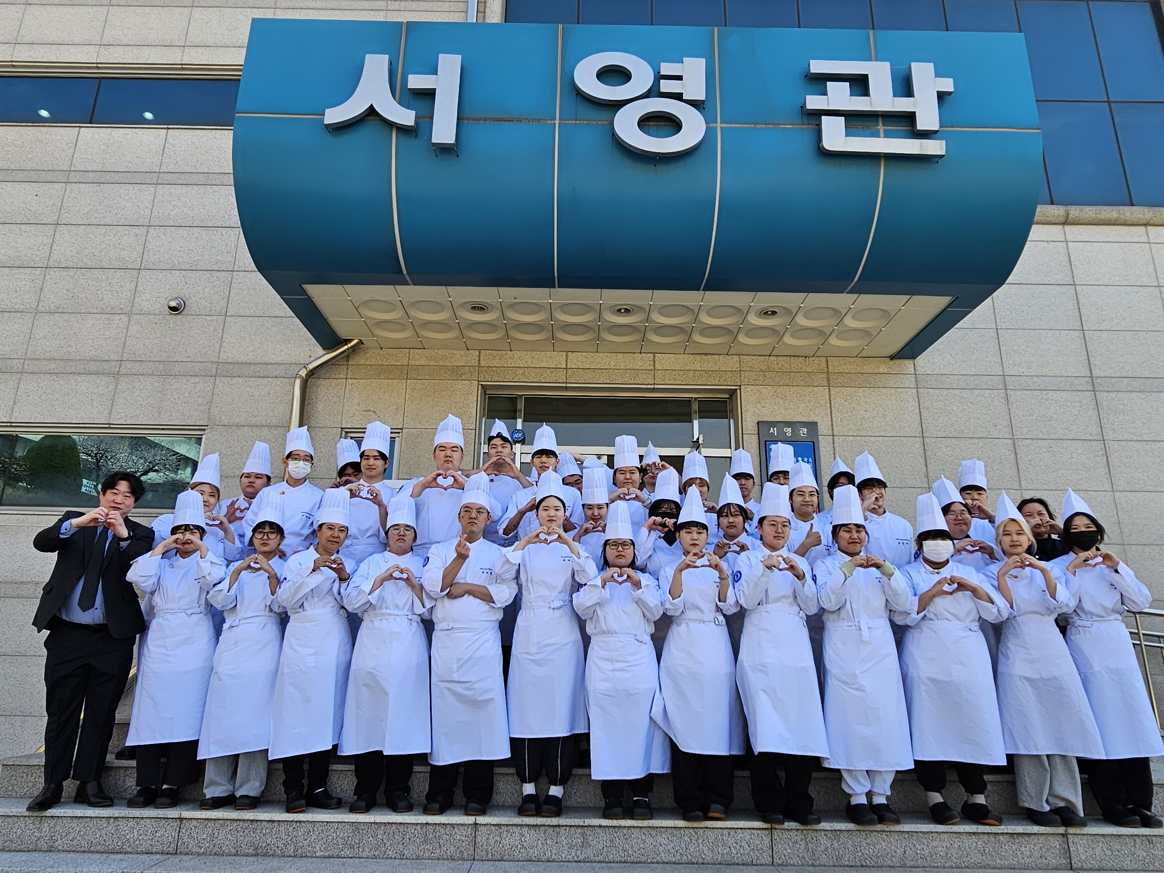 서영대학교는 최근 호텔조리제빵과가 교내 서영관 데모키친실습실에서 제4회 영셰프 선서식을 진행했다고 25일 밝혔다.이번 행사는 올해 신입생 65명 전원이 본인의 학과 유니폼에 대학마크와 학과배지를 부착한 후 외식산업을 주도하는 미래의 셰프로 성장하겠다고 다짐하는 선서식이다.