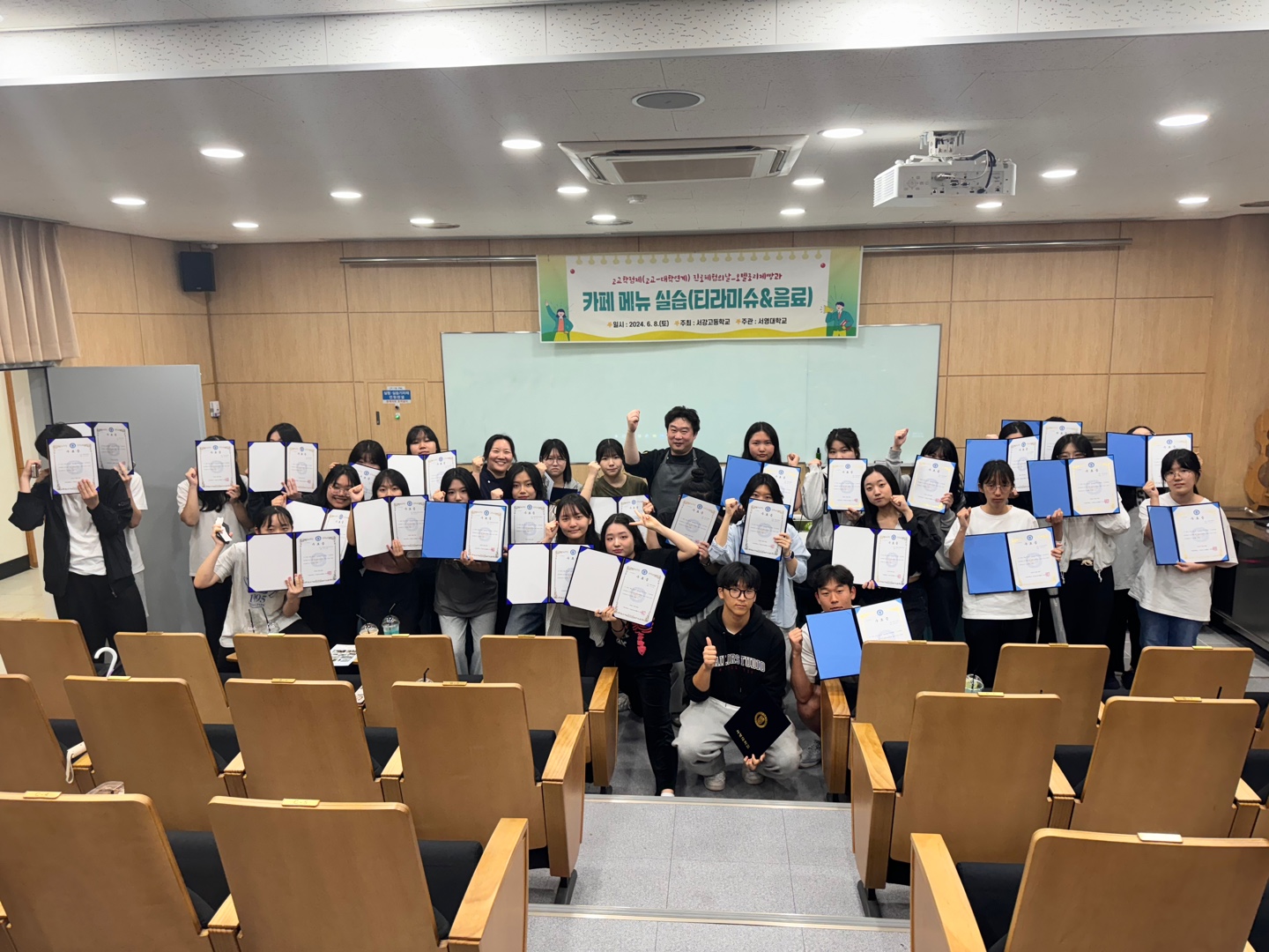 고교학점제 진로체험의날 행사로 고등학생 대상으로 하여 서영대 호텔조리제빵과에 방문해 카페메뉴실습(티라미슈 & 음료)을 진행하였습니다.
