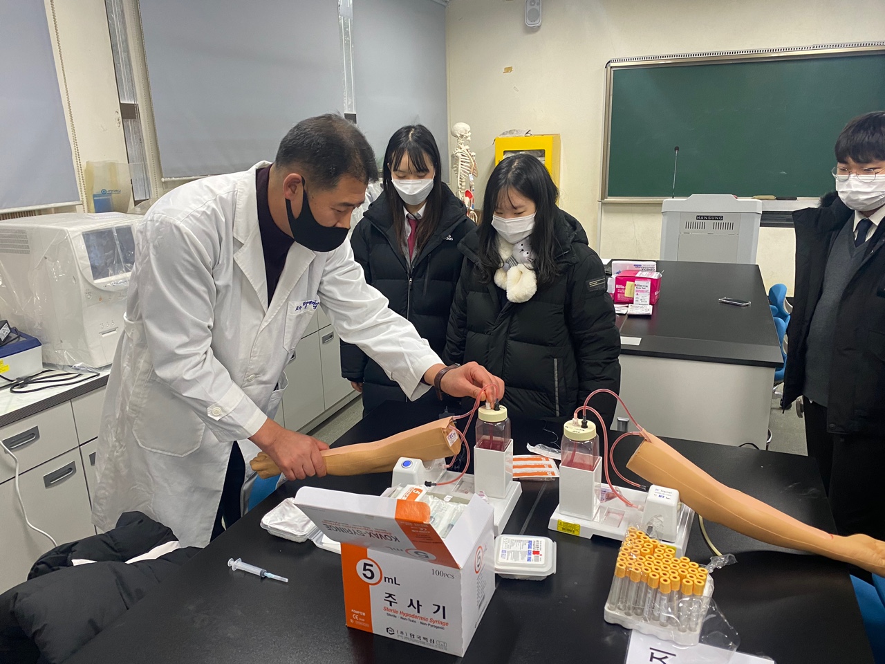 우리 대학 임상병리과(학과장:조영국 교수)는 12월 15일 서강고등학교 1,2학년 재학생 30명을 대상으로 "진로체험의 날 " 행사를 진행하였다