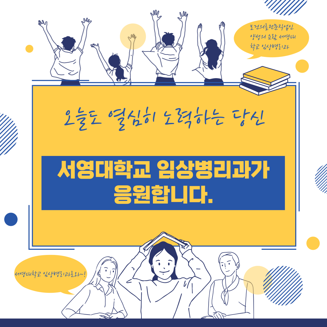 2022. 07. 07. 서영대학교 임상병리과에서는 재학생들의 다양한 학습전략 습득과 활용을 위한 활성화를 목적으로 졸업예정자 60명을 대상으로 전공 관련 Level Up 프로그램을 추진하였습니다. 올해에는 수혈검사의 중요성과 현장에서의 문제해결을 위한 수혈업무 이해도 향상을 위한 것으로 다양한 수혈 현장경험과 습득된 이론지식의 이해도 향상을 위한 시간으로 운영되었으며, 본 프로그램에 참여 학생들의 만족도 조사결과 9.0점이상(10점 기준)의 매우 높은 조사결과를 보였으며 향후 모든 학년을 대상으로 프로그램 확대운영을 희망하였습니다. 향후 학과에서는 임상병리과 재학생들의 다양한 전공학습전략의 활성화를 목표로 지속적이고 질적인 프로그램운영의 활성화를 모색할 계획이다. 서영대학교 임상병리과 화이팅!!!