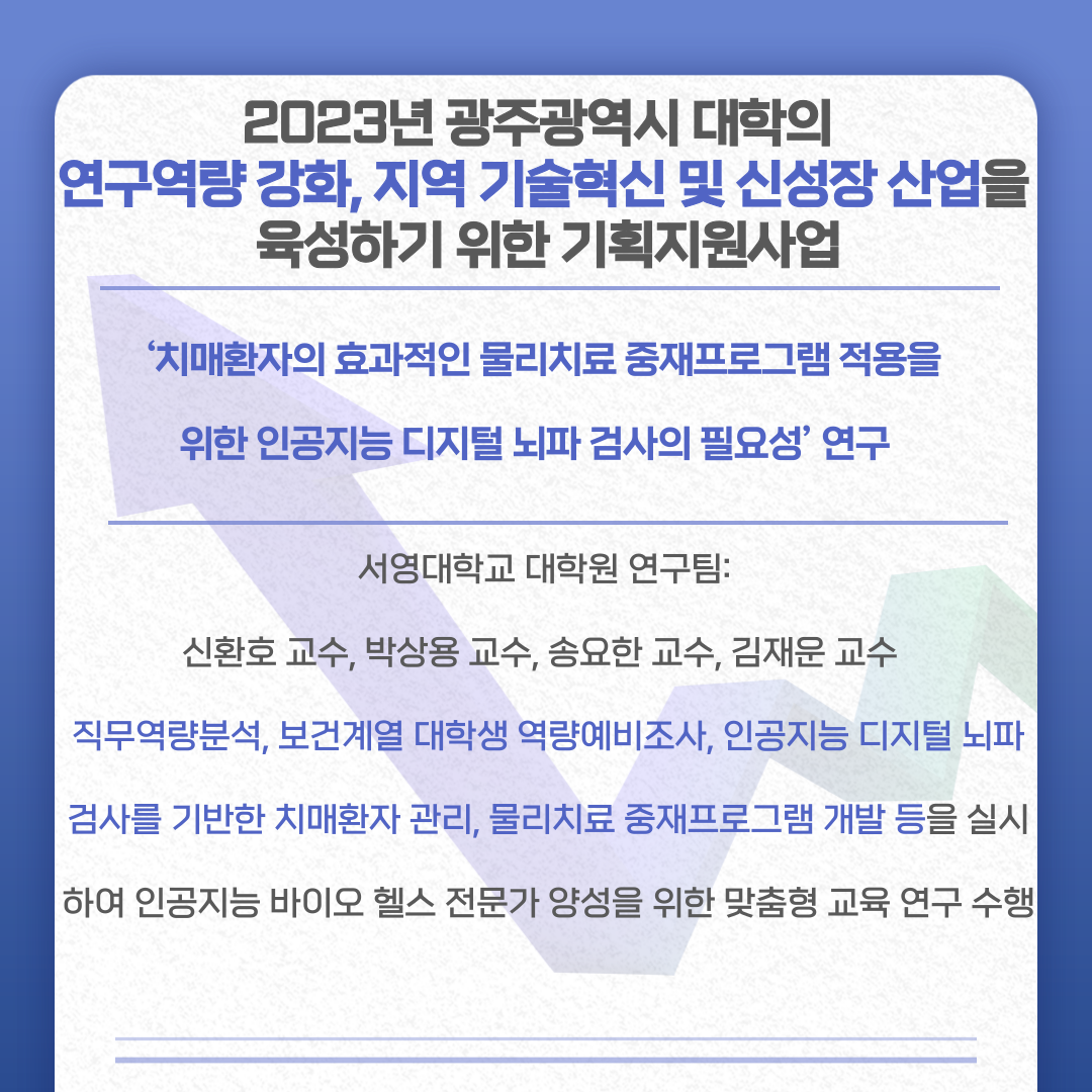 ‘치매환자의 효과적인 물리치료 중재프로그램 적용을 위한 인공지능 디지털 뇌파 검사의 필요성’ 연구 주제로 서영대학교 대학원 연구팀인 신환호 교수,