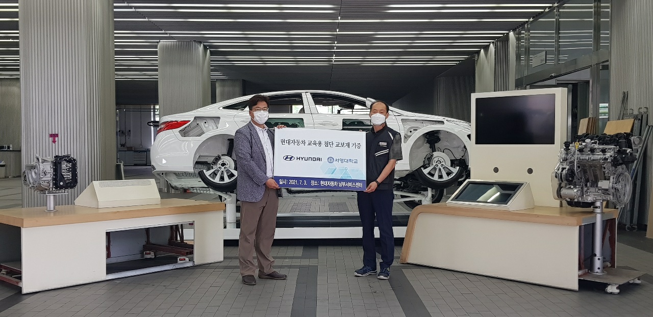 2021년 7월 3일 토요일 ㈜현대자동차에서 1억원 상당의 첨단 실습용 기자재를 기증해주셨습니다.