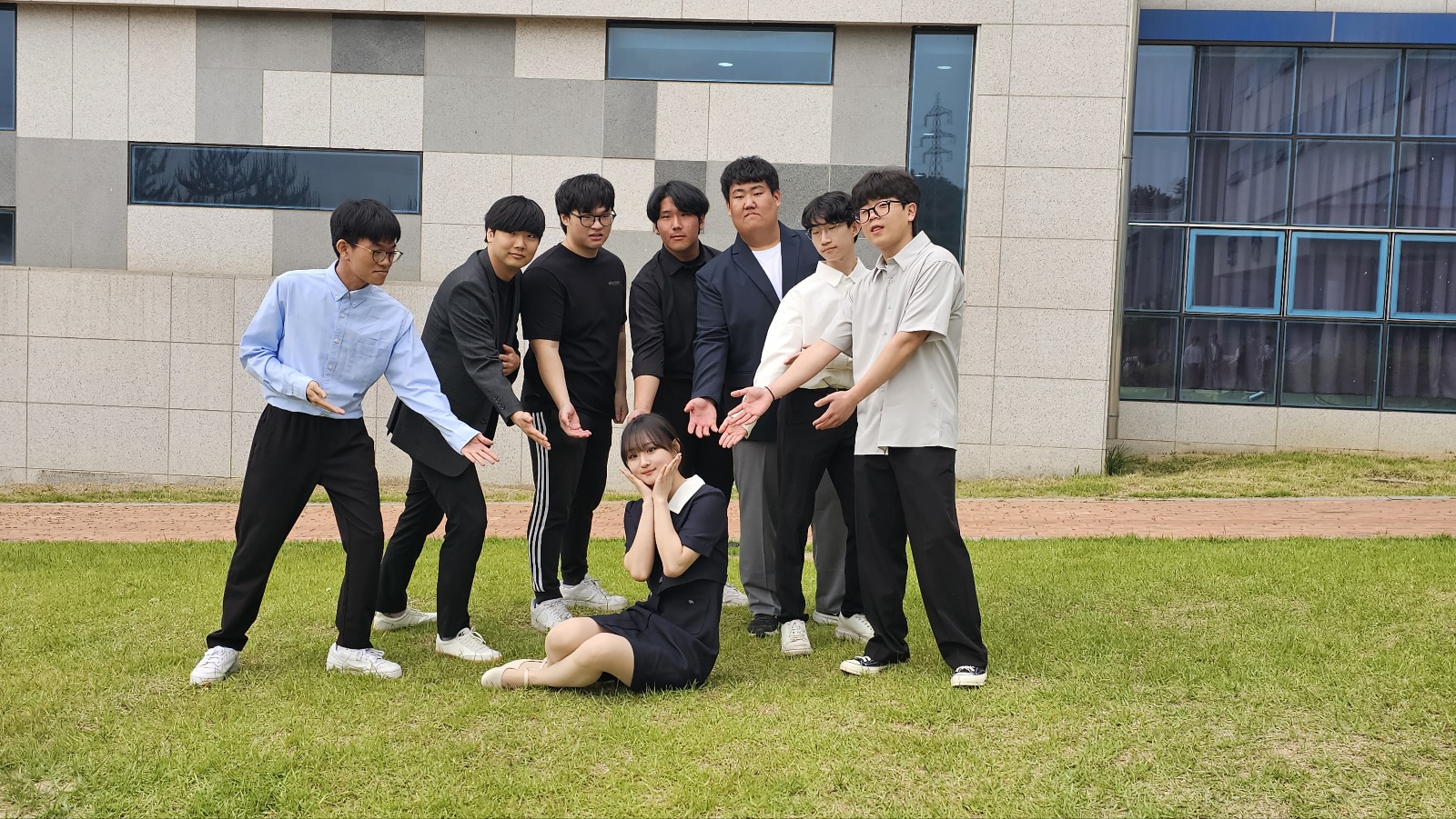 미래자동차과 2학년 재학생이 졸업 사진을 찍었습니다.