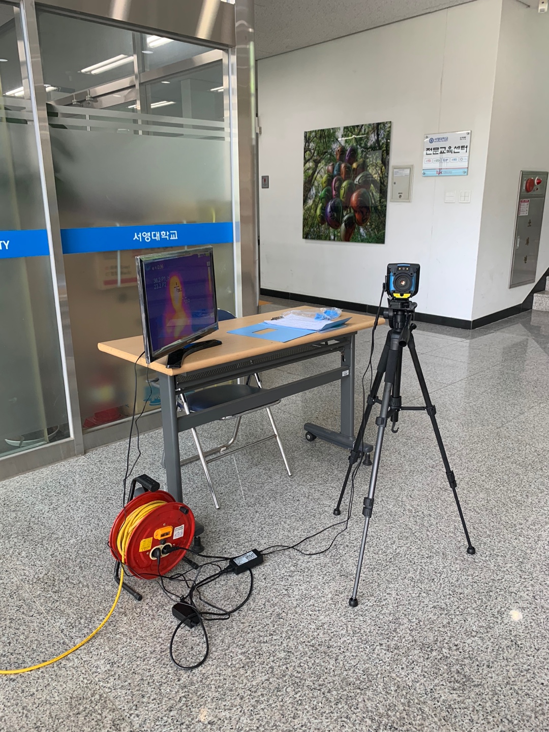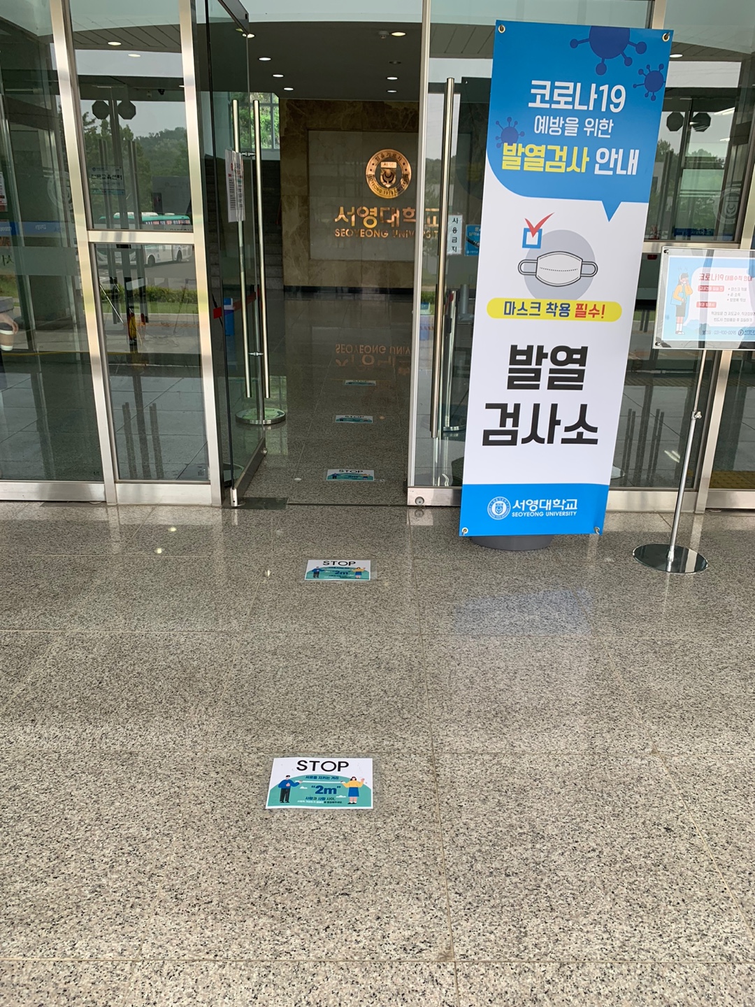 서영대학교는 발열검사소는 교내로 출입하는 모든 사람들을 대상으로 마스크 착용, 발열검사, 손소독, 안전팔찌 착용을 운영하고있습니다. 또한 차량 이용자의 경우 드라이브 스루 방식을 이용하여 차내에서 검사하고 있으며,