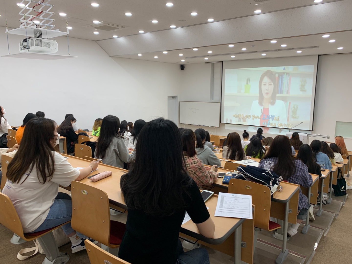 사회적 거리를 유지하며 대면 수업 중