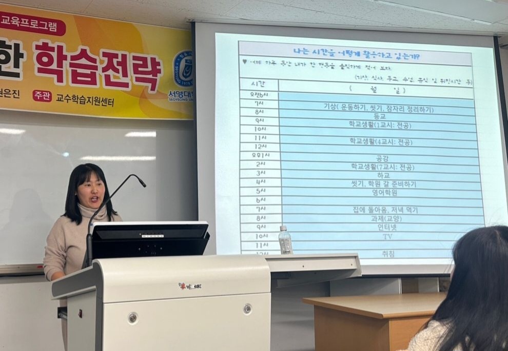 교수학습센터에서 주관하는 디딤교육에서 효율적인 시간관리로 학업성취도를 향상시킬 수 있는 학습전략에 대한 특강이 진행되었습니다^^