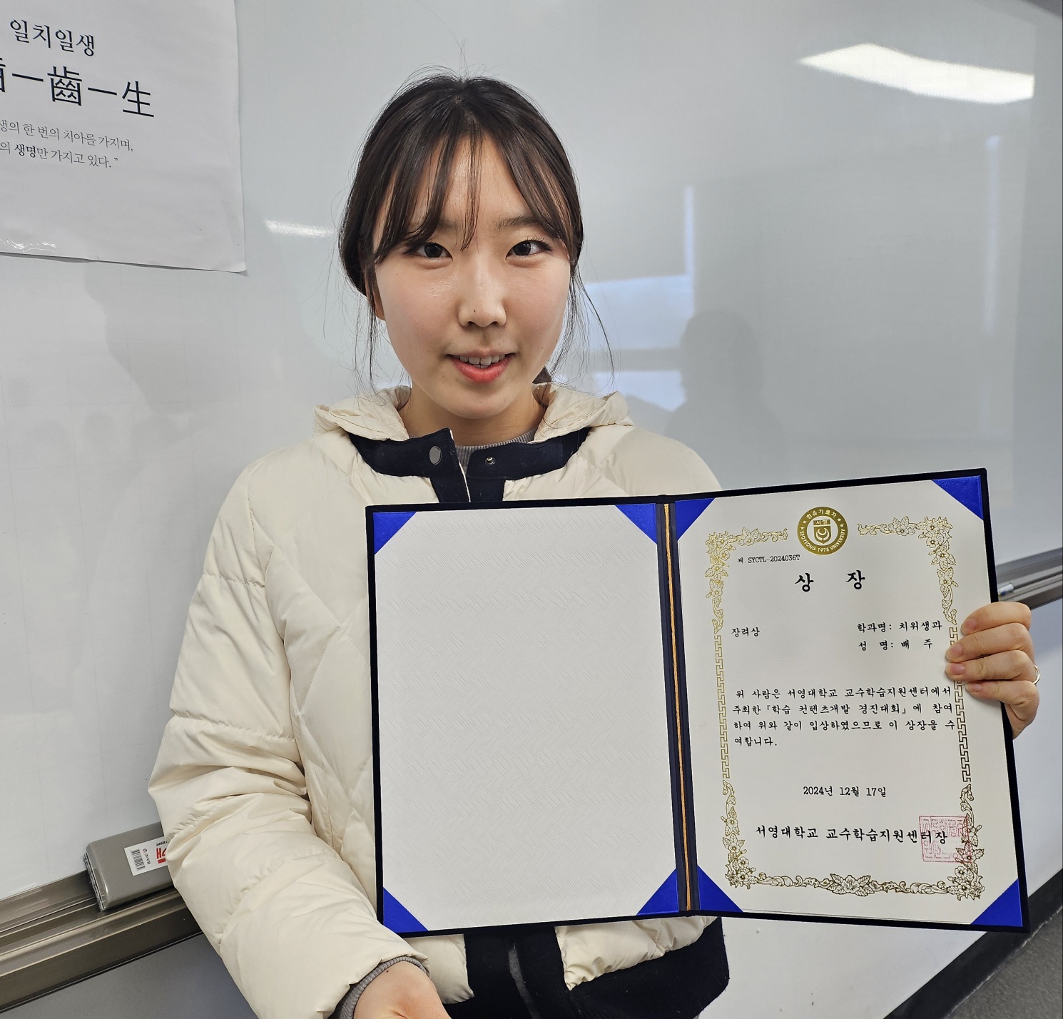2024 학습 컨텐츠 개발 경진대회에서 2학년 배*주 학생이 장려상을 수여받았습니다 ^^ 축하합니다!