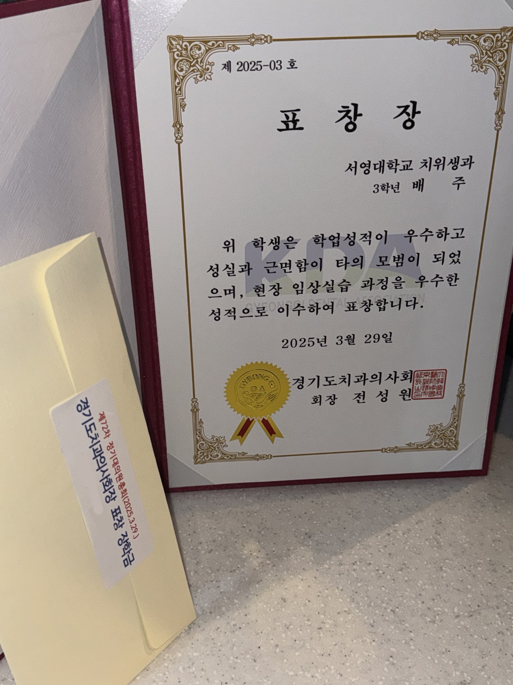 3학년 배*주 학생이 표창장을 수여받았습니다^^ 축하합니다^^