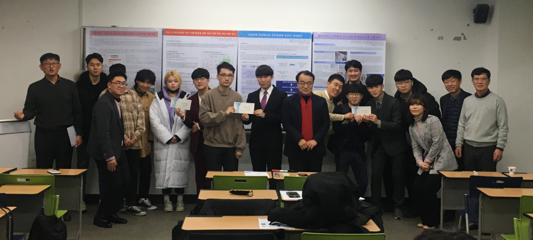 캡스톤 디자인 ( 서용구교수님 지도) 의 주제연구 결과물의 조별 발표 대회 및  우수팀 시상이 있었습니다 .