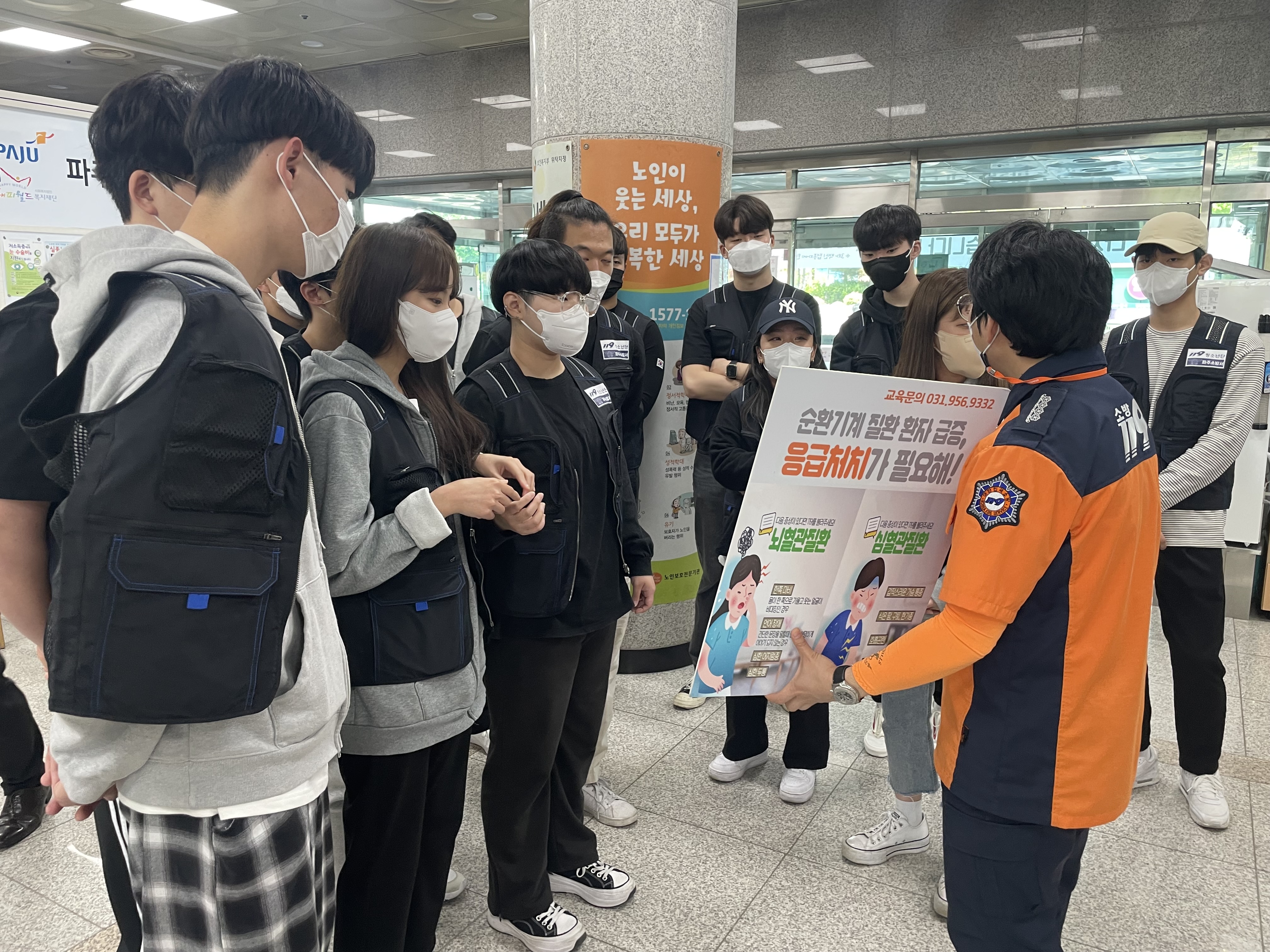 o. 우리대학 ( 총장 김정수) 소방안전과 (학과장 천종철 교수) 소방안전봉사 동아리 불안당 회원들 은 파주소방서, 파주병원, 파주시보건소, 파주시노인복지관 등 파주시 주요 4개 기관이 연계하여 함께하는 지역 안전봉사 활동에 참가하였다.