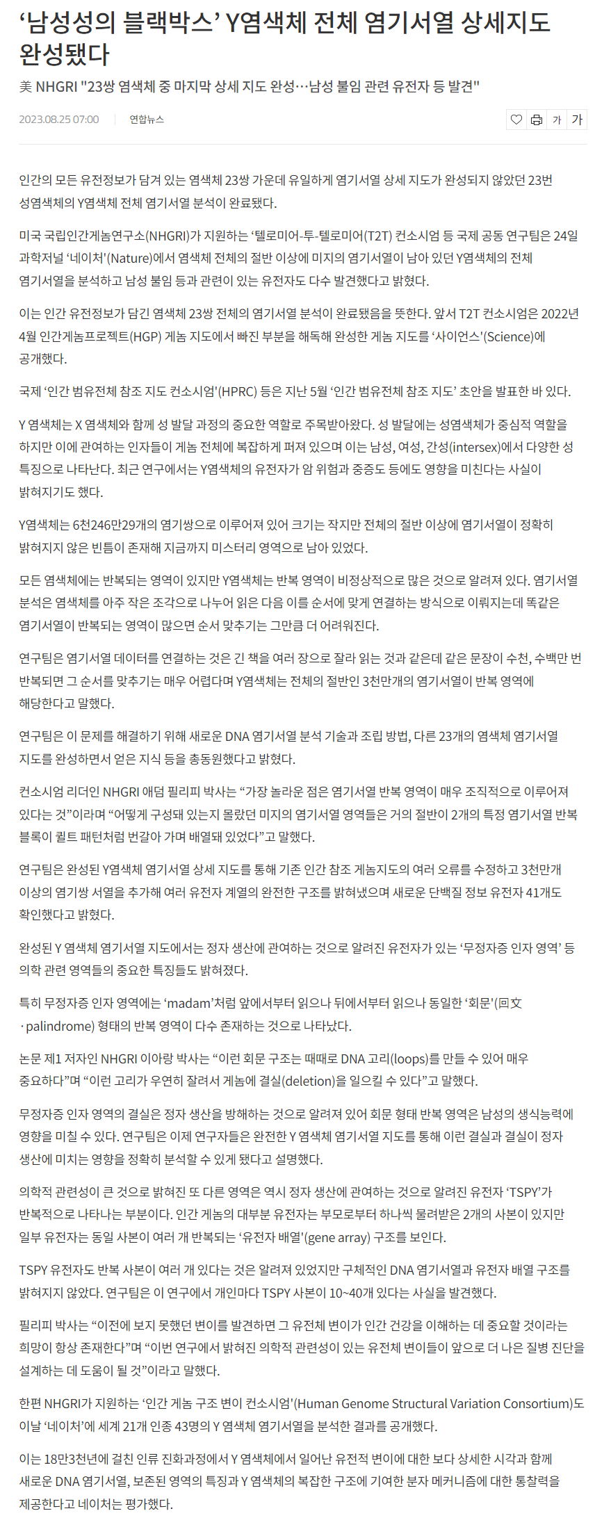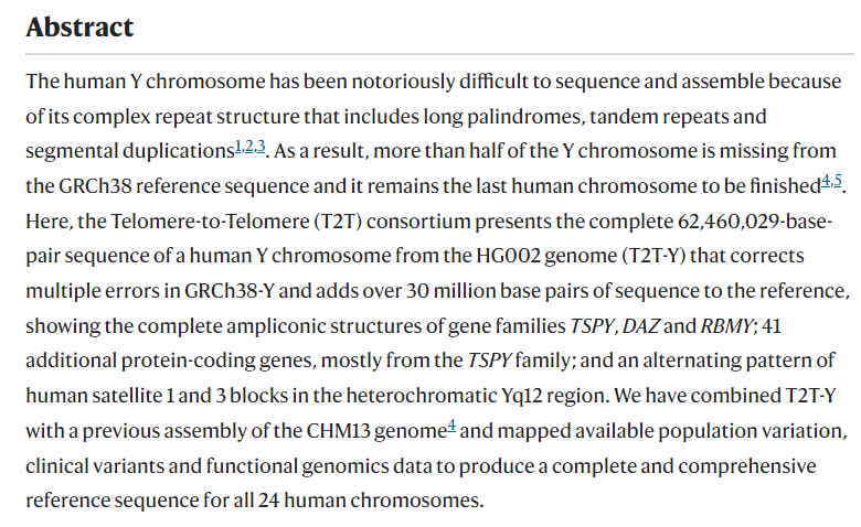 Rhie, A., Nurk, S., Cechova, M. et al. The complete sequence of a human Y chromosome. Nature (2023).