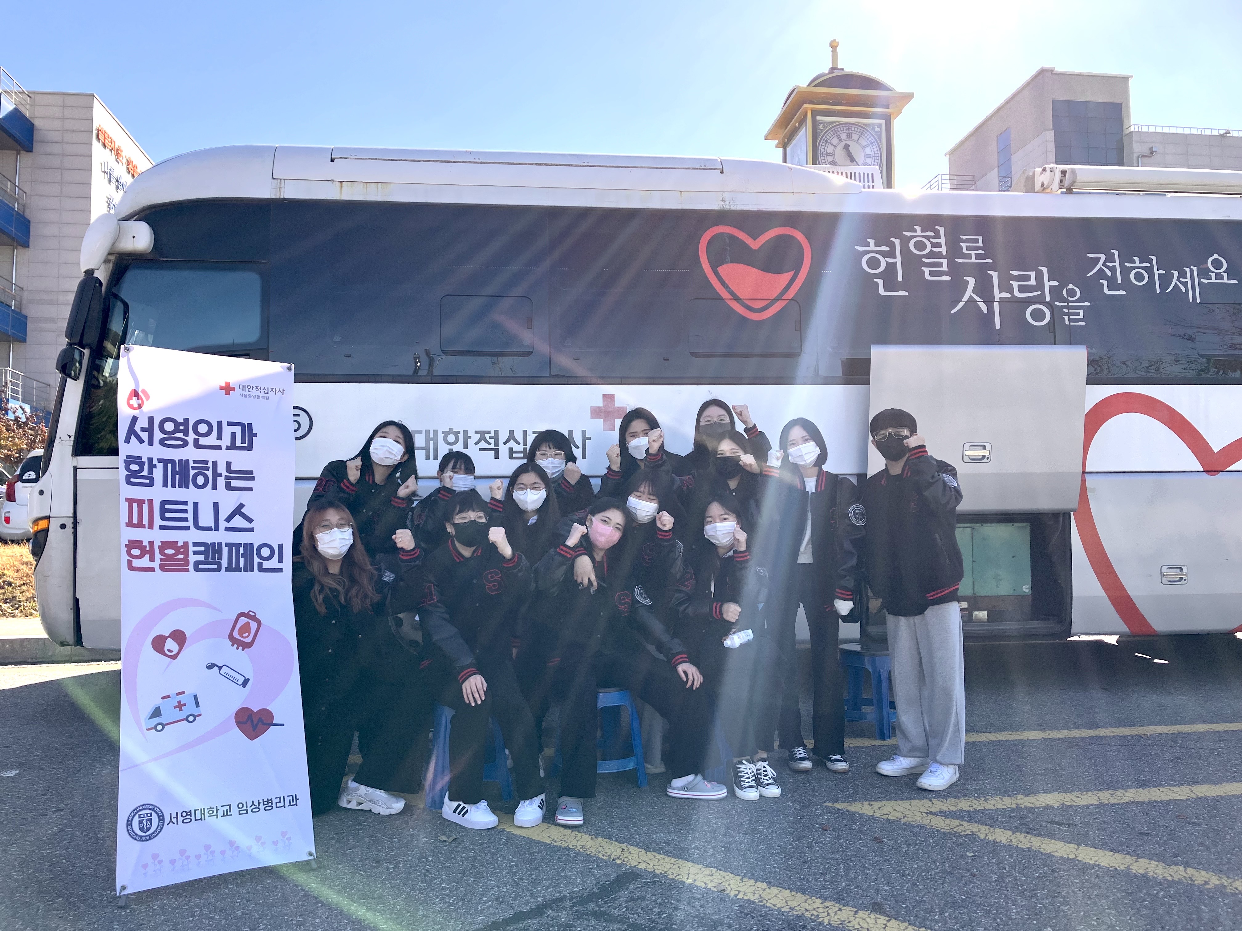 "서영인과 함께하는 피트니스 헌혈캠페인"은 생명의 소중함을 전하는 현혈 활동의 적극 실천을 통해 건전한 헌혈 문화를 정착하고 확산시키며, 학생봉사활동을 활성화하려는 목표를 가지고 우리 학과가 추진하고 있는 프로그램이다.