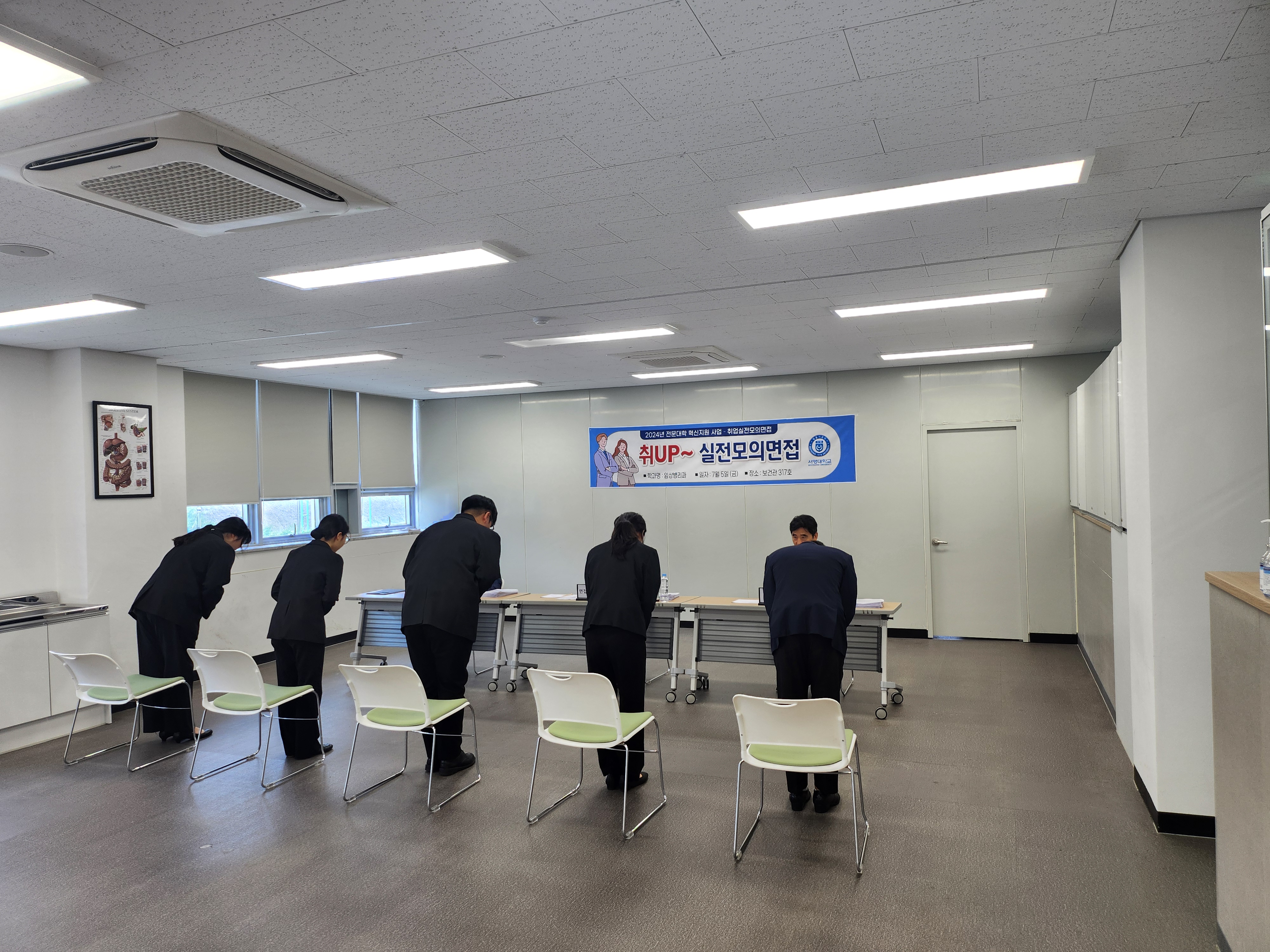 지난 7월 5일, 우리 학과에서는 졸업을 앞둔 3학년 학생들의 성공적인 취업을 지원하기 위해 '취UP! 실전모의면접' 프로그램을 진행했습니다. 3학년 학생들은 자신의 이력서, 자기소개서, 증빙 서류 등을 제출하여, 실제 채용 과정과 동일하게 준비했습니다.