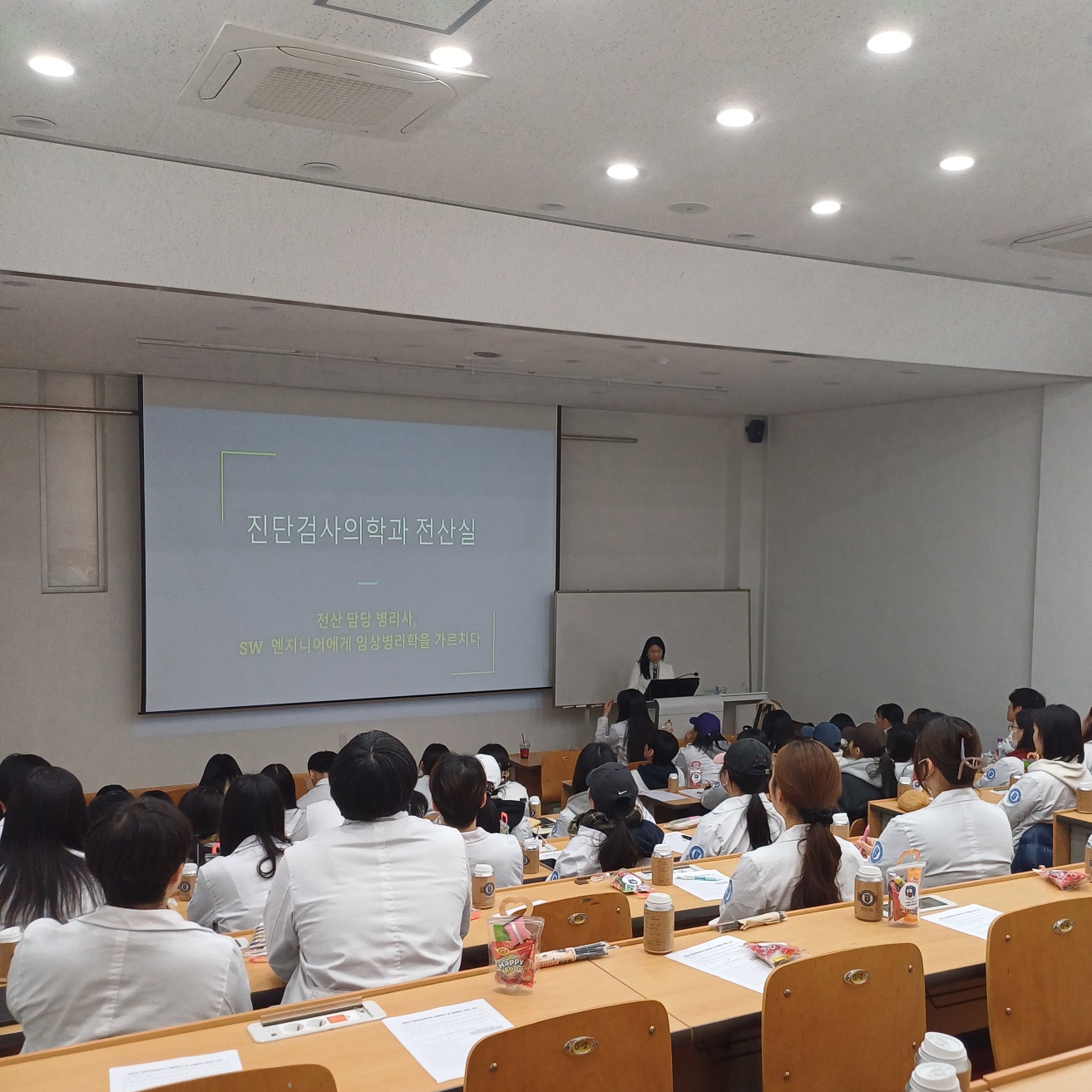이 날, 1학년 재학생들은 비의료기관 스타트업에서 임상병리사의 역할, 다양한 진출할 수 있는 분야에 대해 들을 수 있었습니다. 또한, 예비 임상병리사에게 진로를 선택하는데 있어서 필요한 세심한 조언을 해주셨습니다.