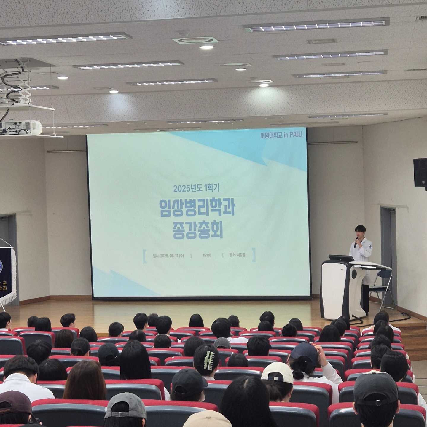 지난 11일 오후, 이번 학기를 돌아보는 2025년도 1학기 최강임상 종강총회가 우리 대학 서강홀에서 1, 2, 3학년 재학생이 모인 가운데 진행되었다.