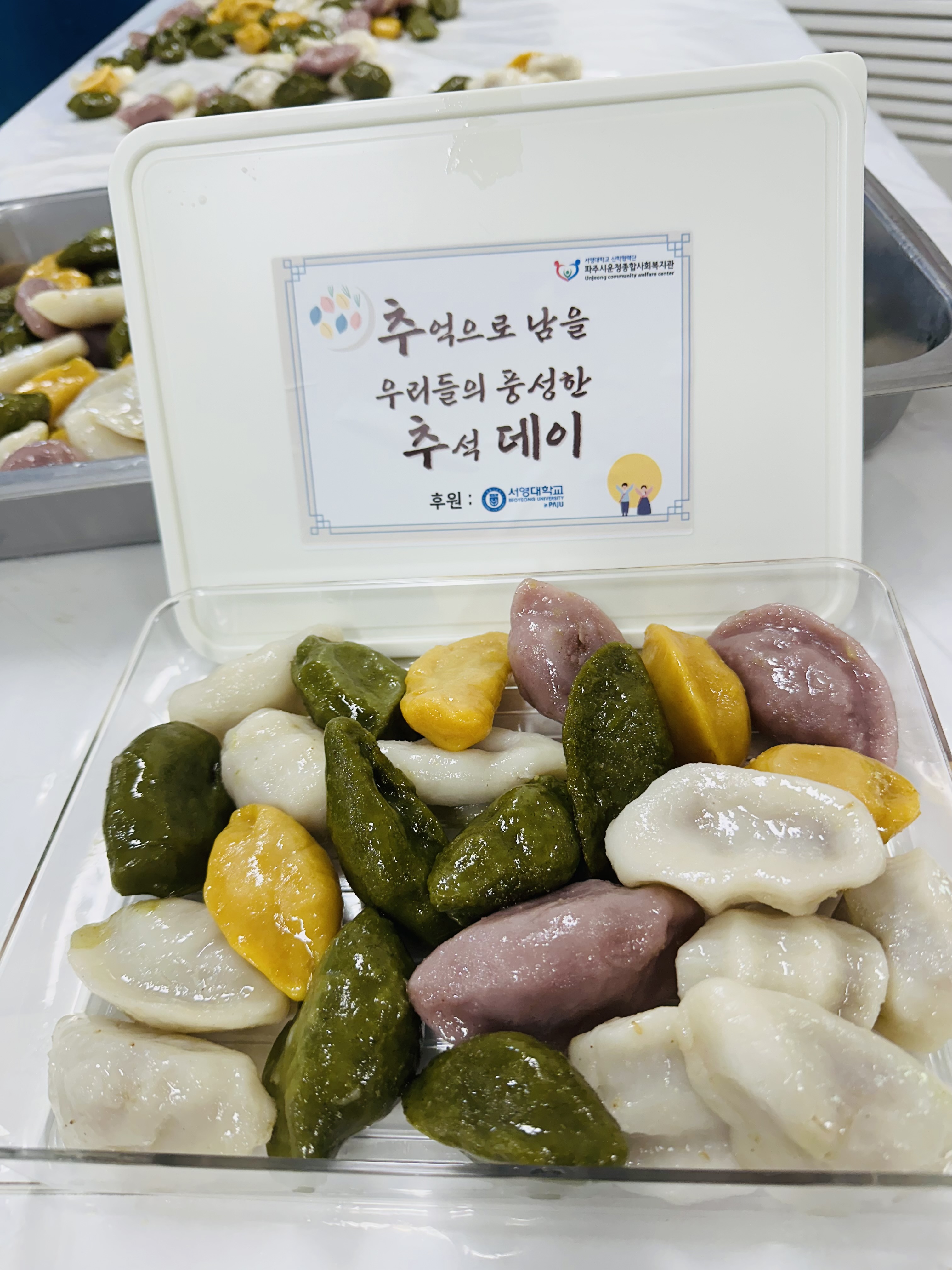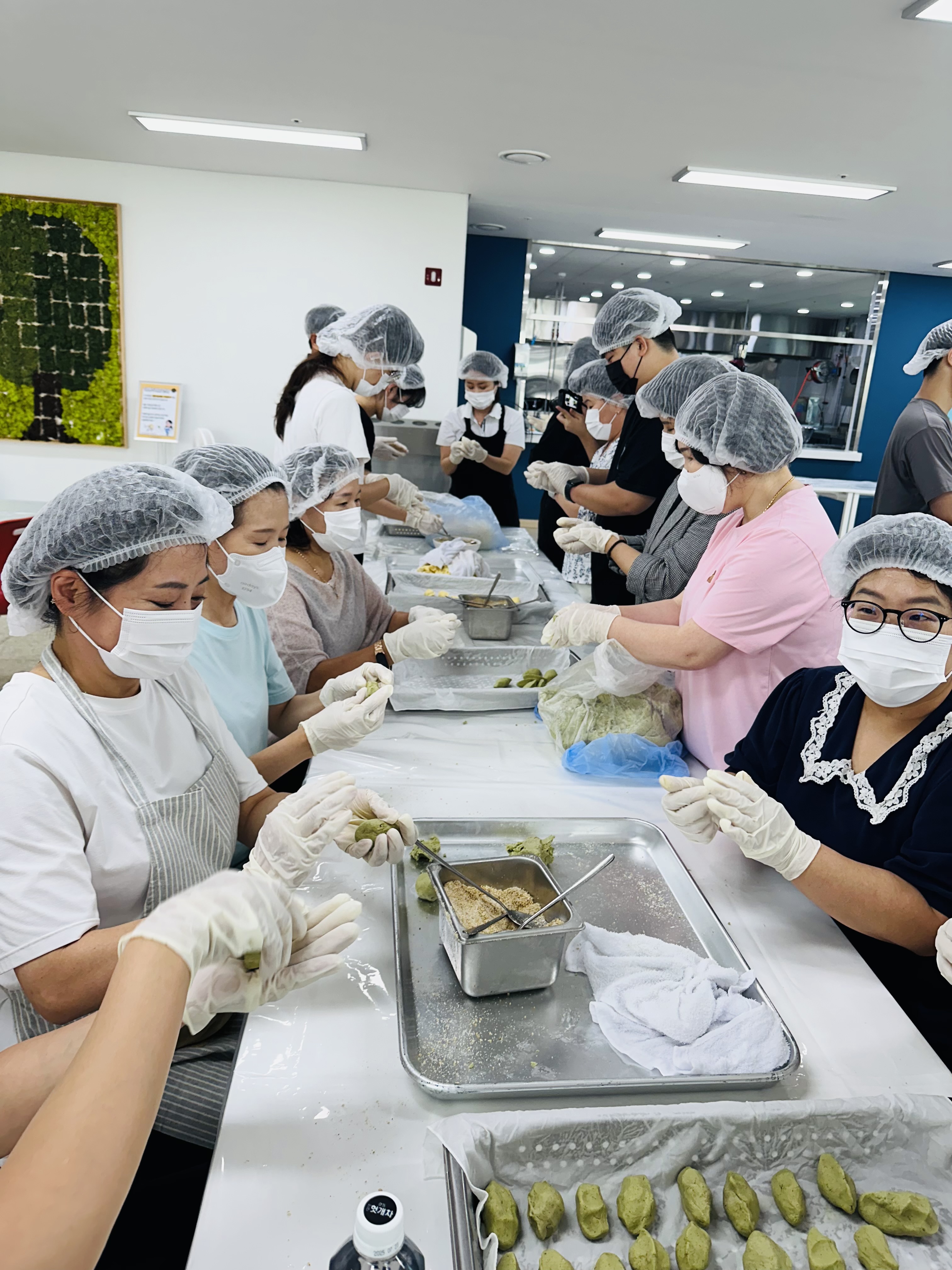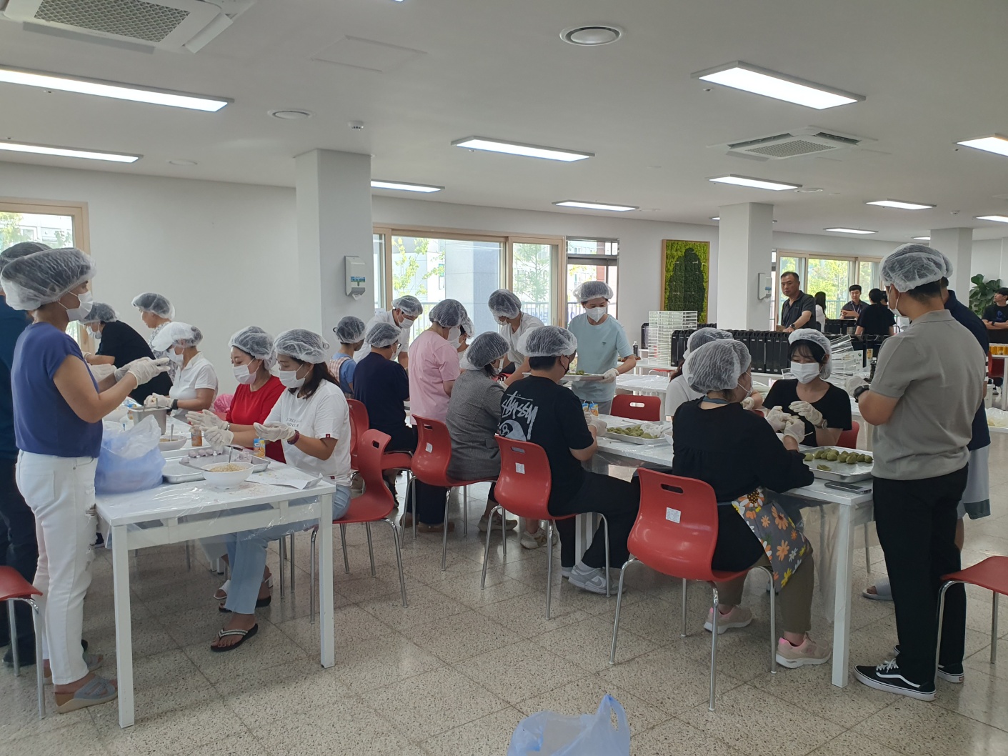 위생을 철저 지키기 위해 위생모자와 장갑을 착용하고 송편을 빚었으며, 송편 만들기 팀, 추석 물품 포장팀, 송편 배달팀으로 나뉘어