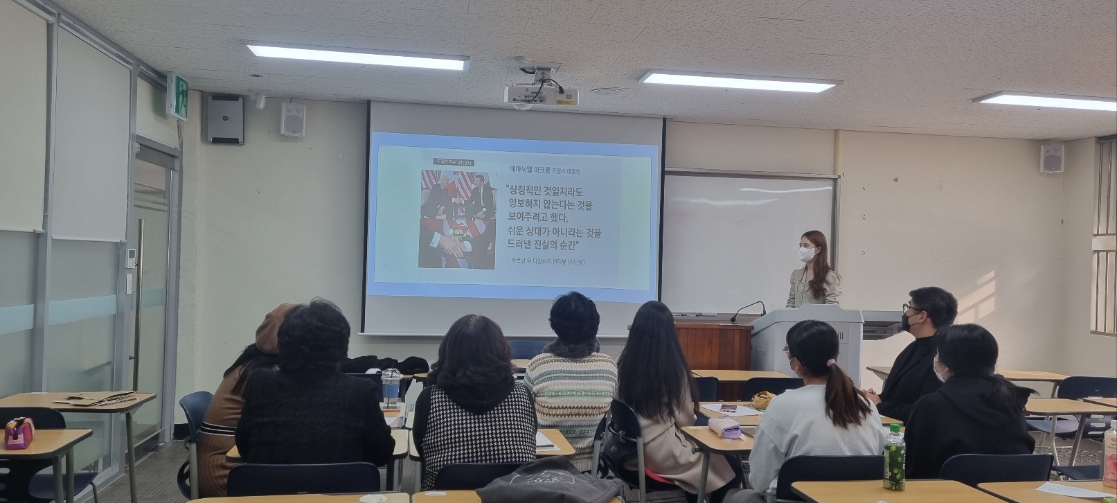 12.9.금 스피치교육 3회차가 있었습니다. 이번 회차에는 이미지메이킹에 관련하여 강의가 있었습니다. 나만의 퍼스널 칼라도 확인해보고, 상대방을 만났을 때 악수하는법, 어떤 명함이 좋은지 어떻게 건네는지 등 상대에게 나의 이미지를 인상적이고 좋은 사람으로 기억될 수 있을 좋은 내용들로 꽉 찬 시간이었습니다^^