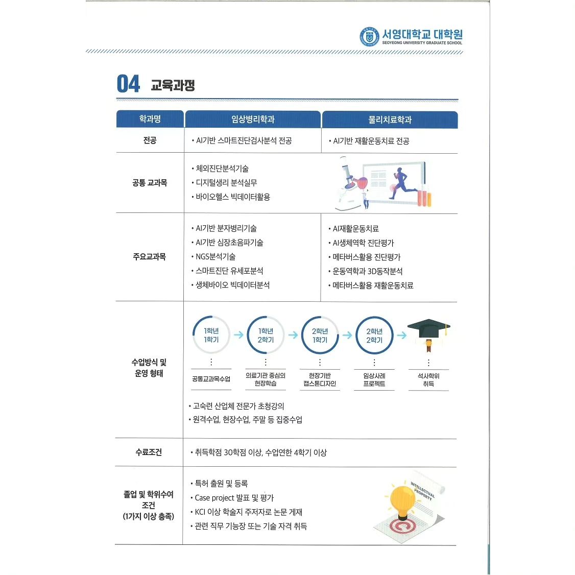 저희 서영대학교 전문기술 석사과정 대학원 모집요강이 나왔습니다!3년 이상의 경력과 학사학위가 있는 직장인 또는 일반인들을 대상으로 전문기술 석사과정을 모집하고자 합니다. 저희 물리치료학과는 ‘AI기반 재활운동치료 전문인력’을 양성을 목표로 인공지능 장비를 활용한 진단 및 재활, 그리고 기존 임상에 적용하고 있는 재활운동의 심화교육을 통해 전문성을 더욱 강화하고자 합니다.